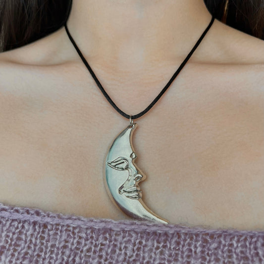 Crescent - Rattail Cord Necklace | Silver Pendants & Cords Collection