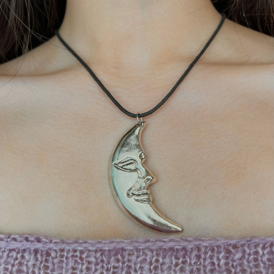 Crescent - Waxed Cotton Cord Necklace | Silver Pendants & Cords Collection